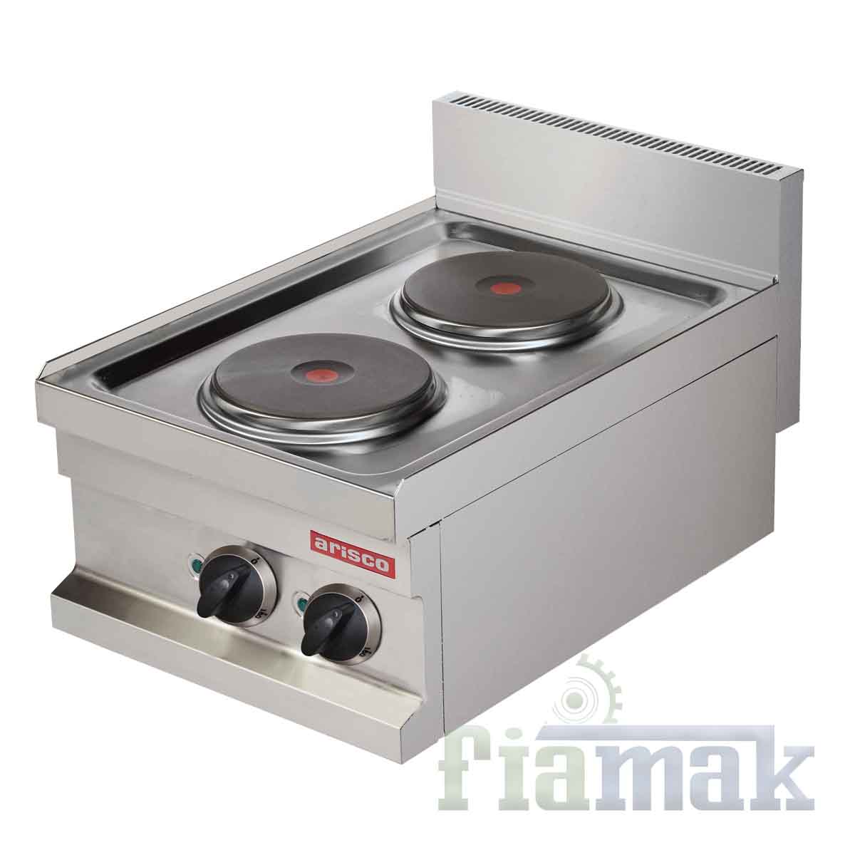 Arisco Hotmax EC604, profesyonel mutfaklar için tasarlanmış, yüksek performanslı bir elektrikli set üstü ocaktır. Paslanmaz çelik gövdesi, dayanıklılık ve hijyen standartlarına uygunluk sunar. İki adet Ø180 mm çapında yuvarlak ısıtma plakası, 7 kademeli ısı kontrolü ile farklı pişirme ihtiyaçlarına esneklik sağlar. Kompakt boyutları sayesinde tezgah üstü kullanıma uygundur ve alan tasarrufu sağlar.